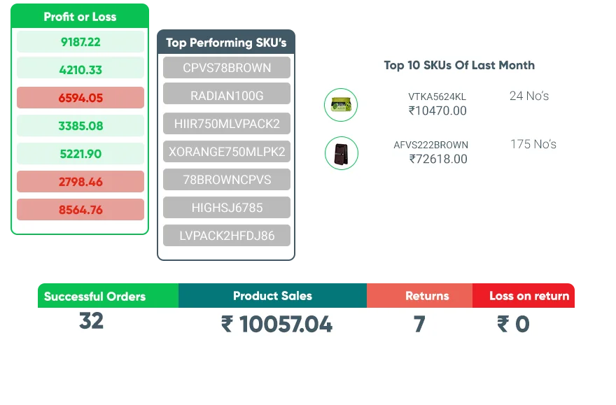 Gives detailed profitability insights by SKU, and Order wise.