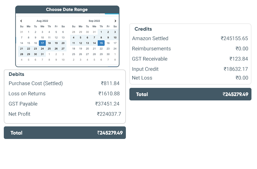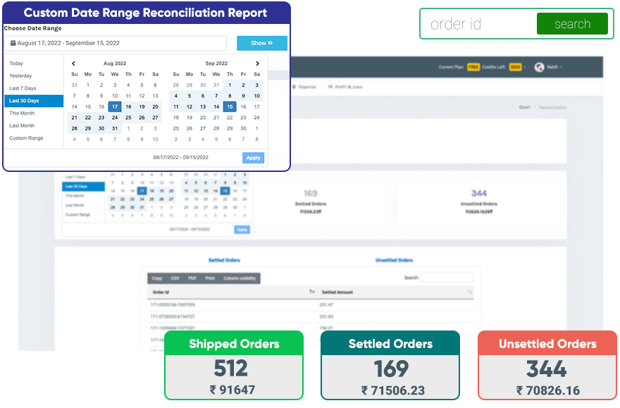 You can understand settlement and unsettlement amounts like an overview of sales without touching the excel sheets from Amazon. Also, search with the order id to know the settled amount of each order placed. The reconciliation feature will give the date-wise settlement report of shipped orders and settled amounts.